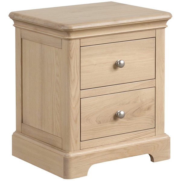 Practical storage options are plentiful with a range of free-standing chests, dressing table and wardrobes to cater for all the storage solutions required. The stylish bed frames feature graceful curved mouldings and solid oak tops to complete the collection. The dressing table need assembly.